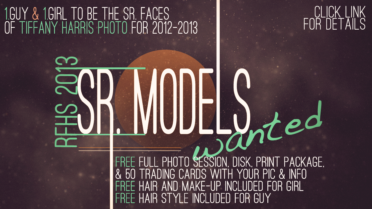 Senior Photography has changed so much over the last “few” years (let’s just just it’s been awhile for me).  It is fresh, fun, and can be easily customized to really reflect each individual. I find that it is such a great place to really express creativity.  I had the privilege of working with a few RFHS Seniors in the Spring and I am ready for more this year.  I am currently  looking for two models-one guy, one girl to be THE faces of THP Senior Photography for 2012-2013 school year-all for free.  FREE!!